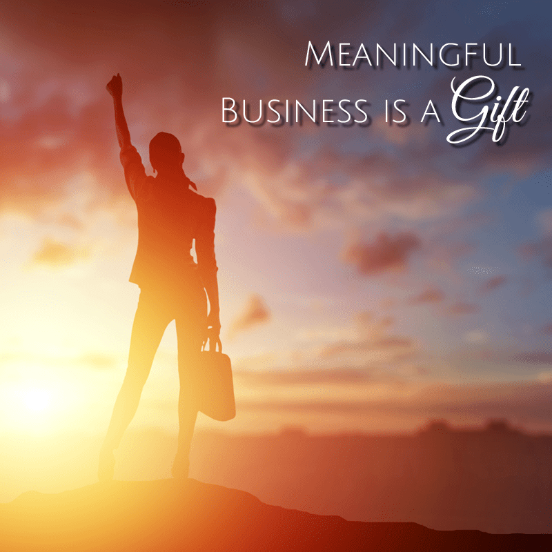 Creating a meaningful business is a gift. Bringing meaning to others utilizing business as the vehicle for transformation and impact is what is available to us. We can contribute who we are, our gifts and talents and together make the world a better place.